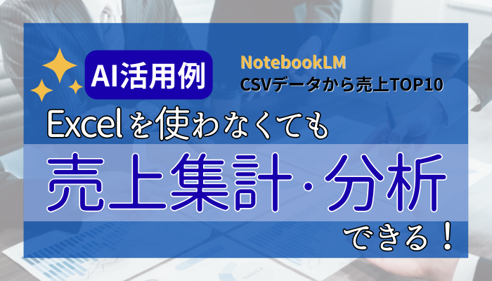 Excelが苦手でも大丈夫。GoogleのAIツールNotebookLMを活用すれば、CSVデータから売上ランキングを簡単に自動集計できます。プログラミング不要、Excell不要。AIに質問するだけで