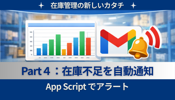 スプレッドシートで在庫を色分けし、在庫10以下で通知メールを飛ばす簡易設定。さらにApps Scriptでカスタム通知や自動アラートまで実現する在庫管理の最終回です。在庫が減ったら自動でGmail通知